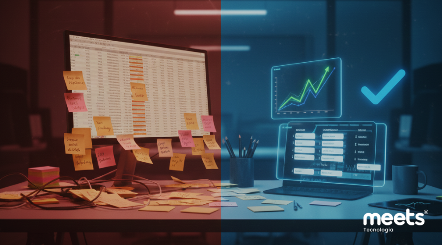 - Visibilidade zero: sem um acompanhamento de oportunidades claro, gestores trabalham no escuro, incapazes de prever receitas ou identificar gaps no funil de vendas. Logo, a tomada de decisão é baseada em feeling, e não em dados.